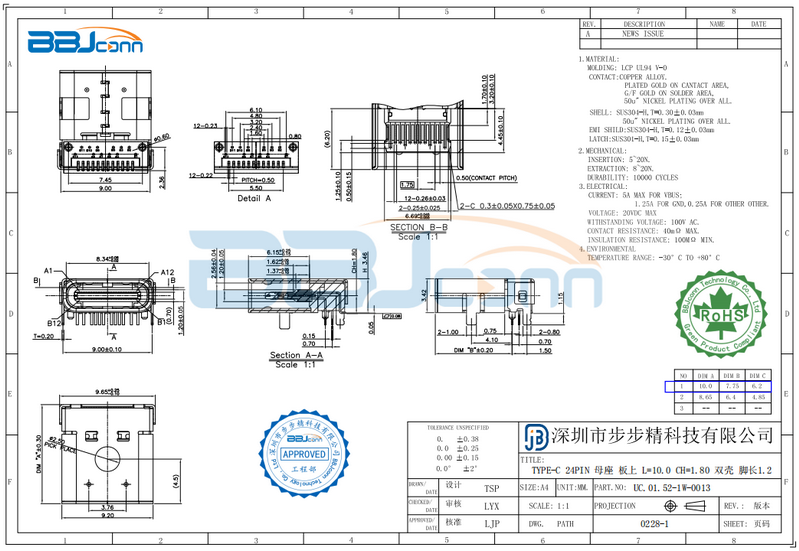 Amphenol Type-c插座連接器的速度和性能不僅取決于其封裝尺寸類(lèi)型,還取決于接口版本。與USB Type C 3.0超高速連接器相比,具有接口2.0的USB Type C連接器速度較慢。但是,usb 3.0連接器與早期版本向后兼容。因此,此類(lèi)連接器可以支持與遺留系統(tǒng)的互操作性,而無(wú)需額外成本。