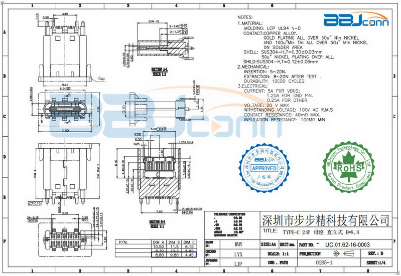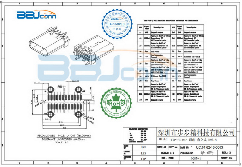 Type-c插座連接器支持新的SuperSpeed USB 3.1格式,該格式提供高達10 Gbps的數據傳輸速率,大約是當前USB 3.0版本速度的兩倍。它仍然向后兼容所有USB 2.0格式(LS、FS和HS),因此即使舊系統設計為加密狗,它也可以利用新的連接器。